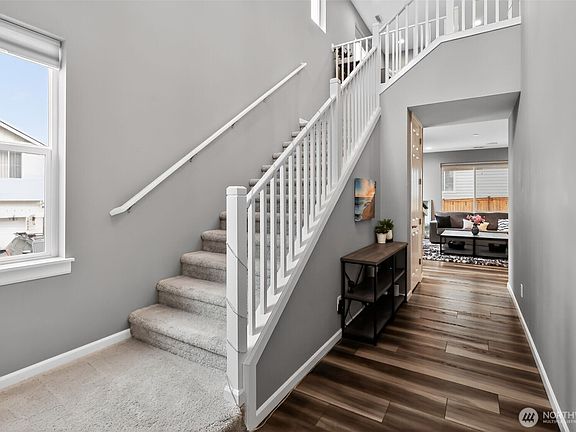 Welcome to this Stunning Renton home with breathtaking Mt. Rainier views and luxury touches throughout. The gourmet kitchen features double gas ovens, a 5-burner stove, marble backsplash, and upgraded appliances. Enjoy two gas fireplaces, one indoors and one on the extended covered patio with natural gas BBQ hookup. Whole-home audio includes hard-wired speakers (4 up, 4 down). Smart home upgrades include smart switches, WIF garage door, and custom Christmas lights wired to soffit outlets. Fully fenced and irrigated yard, high-efficiency gas furnace and Air Conditioning, Custom primary closet built-ins with lights, finished garage, plus two storage sheds. LED lighting through out. Wired for Electric Vehicle Charger Nema 650 (50 amp).