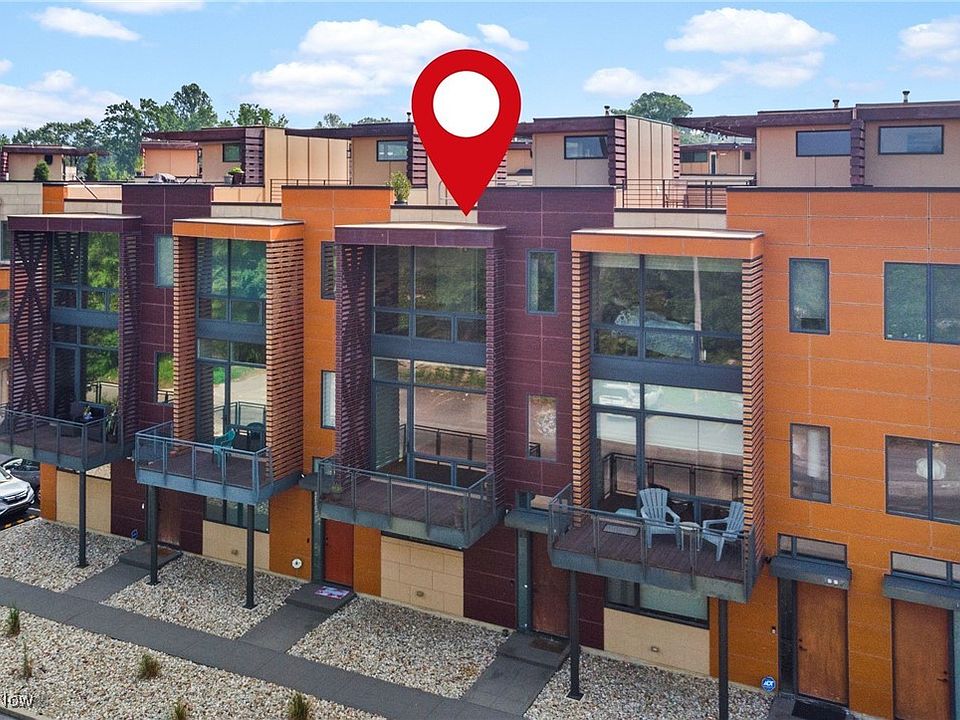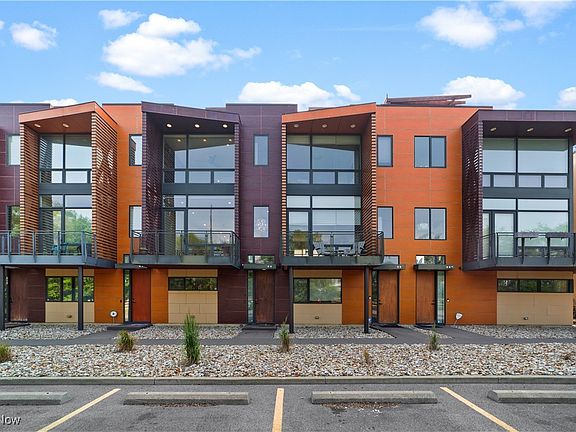 Are you ready to experience the best of Cleveland? Live in this stunning townhome in the heart of Little Italy / University Circle! This fabulous home features industrial-chic finishes and modern design with walls of glass, high ceilings, floating staircase, and floor to ceiling windows creating an enchanting light-filled residence. Beautiful open kitchen with wood cabinets, natural stone counters, huge breakfast island and all appliances included. Off the living room is a spacious balcony, and a half bath completes the main floor. Upstairs are 2 bedrooms and 2 full baths including the glamorous master suite with walk-in closet w/ custom built-ins, beautiful master bath with designer finishes and tile shower. SEE FLOORPLAN IN PHOTOS. The laundry room is conveniently located on the bedroom level and includes a stacked washer and dryer. When it's time to relax and unwind, head up to your private rooftop deck; the perfect getaway for morning coffee, a glass of wine, or entertaining friends while showing off views of University Circle. Just off the entryway on the ground level there is an bonus room which could be a home gym or office. 2 car attached garage with storage cabinets and electric opener. Rooftop level has old siding replaced with new Hardieboard. Short walk to restaurants, coffee shops, art galleries, and more in the Murray Hill district. Live in the neighborhood with Case Western Reserve University, University Hospitals, world class museums and dining destinations, and mere minutes from the Cleveland Clinic plus a short drive to Downtown Cleveland. 12 month home warranty included for peace of mind.