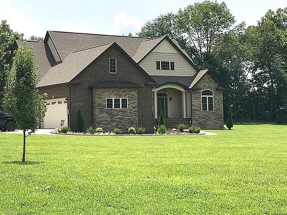 Owners cell 386-237-7480 Gorgeous custom build with beautiful curb appeal stunning brown brick, rock and shakes, wide brick steps to pebble rock covered front porch and leaded glass front door. Bringing you into a large front entry way, open living room with tall vaulted ceiling and fireplace, separate dining area with custom vault and crown moulding. Beautiful custom kitchen cabinets and granite. (I love how the ceilings are so different and the feel of the soaring heights & the open concepts) Beautiful dark hand scraped hardwoods, tile in all the wet areas and carpets in the bedroom. This 2120 sq ft custom home is sure to please with 3 bedrooms and 2 full baths, ( the main bath is large with double sinks for them busy mornings, the master features high vaulted ceilings, walk in closet, large master bath with huge walk in shower completely tiled floor to ceiling, jetted tub and separate water closet. Bonus room over the garage and a huge unfinished attic. The attached garage also has huge closet space and even a hidden storage area that could be used as a storm shelter, with a large 1,252 sq ft attached garage, for the man that loves his own space there is a beautiful separate 24x34 detached garage with an attached 12x34 shop all on a peaceful 2.45 acre lot, complete concrete driveway with RV outlet and tree lined driveway. The crawl space has been encapsulated with commercial rated automatic dehumidifier. So many options and reasons to love this home located in a small subdivision just outside of Erin TN with an HOA (no fees) that limits the size and type of homes (no two alike) no mobile or manufactured homes allowed, it’s peaceful with the sounds of the many birds and yes so many hummingbirds too. If your looking for turn key newer home look no further you can’t replace this property at this price. Owners are selling only to move closer to our children and grandchildren. Realtors welcome to bring your buyer.
