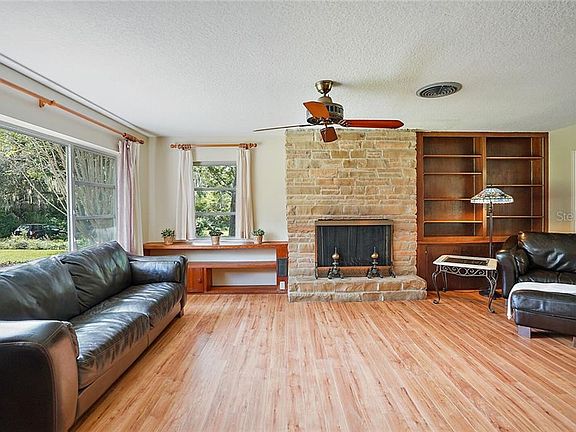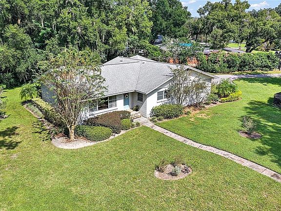 There is something very special about a home that has been with the same family for almost 60 years. You just know that it has been exceptionally well cared for and deeply loved. Mount Dora Lovers here is your chance to own a piece of history. Many original features can still be found in this 1955 Mount Dora Charmer in walking distance to Lake Gertrude and even to downtown if you enjoy a nice stroll on a mild evening. Pine Crest is a very sought after neighborhood in Mount Dora and this 3 Bedroom 2 Bathroom Home sits on almost 0.5 acres of land on a corner lot. The lot has only a minor slope which makes it unique and interesting for the area and allows for almost unlimited possibilities to create your dream outdoor living space. When you step inside you'll find a semi-open floor plan with French Doors leading to the enclosed Florida Room with its beautiful Terrazzo flooring and wood ceiling. The wood burning fireplace in the living room is surrounded by built-in's and the tasteful laminate flooring is protecting the original hardwood that is still underneath. One of the bathrooms has been updated and the second bathroom presents itself in true 1950's vintage glory with salmon pink ceramic tile including the original sink and mirror. Also original to the home is the cedar closet as well as the closet built-ins in all bedrooms. Last but not least already done for you is the mature low maintenance landscaping with gorgeous tall-grown Myrtles and the 2-space Carport with sensor lighting that could be easily converted into a garage. All in all a truly beautiful home in a beautiful and walkable area ready for a new family to make unforgettable memories.