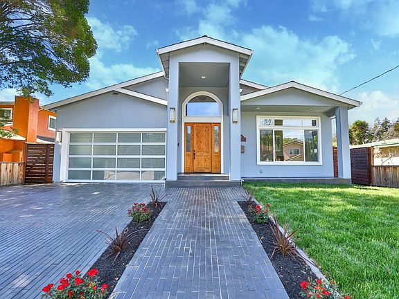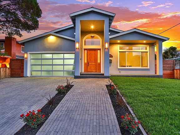 OFFERS DUE MONDAY 5/10 BY 1 PM! Welcome home to this gorgeous new construction built in 2016! Pure luxury & artistry, NO EXPENSE SPARED! This 4 bed/ 3.5 bath modern home dazzles with soaring ceilings, top of the line finishes and fixtures, quartz countertops, Meile stainless steel appliances and more! Engineered hardwood floors throughout. Three of the four bedrooms have their own attached full bath suite. Large closets with built in custom storage and walk-in closet in the master bedroom. Electric fireplace in the living room. Indoor/Outdoor living at it's finest with 8 foot, sliding, out-swing Anderson doors that slide over and open your living room to your backyard and deck. Home is outfitted with Google Nest, LED accent lighting, built-in and surround sound and video security. EV charging in garage and Tesla Solar panels on roof. Paver driveway and walkway and new landscaping. Home is nestled in a quiet and idyllic street. Prime location near Google, Apple, Facebook & Highway101.