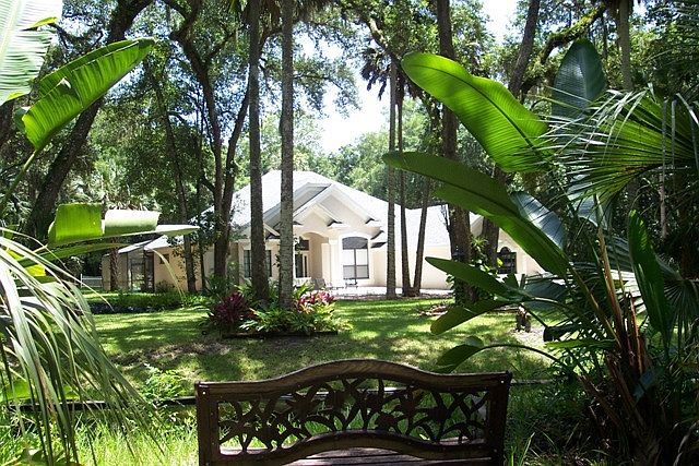 Exquisite 2 acre setting in historic Enterprise FL. Gated grounds with wonderful in ground, heated and screened pool and spa for year 'round enjoyment. 12' ceilings, lots of windows, large front and back yards. Fully fenced with electronic gate. Pool table, bar, built-in office and pool furniture remain. Great home in mint condition! HOA fee is voluntary and is for road maintenance.