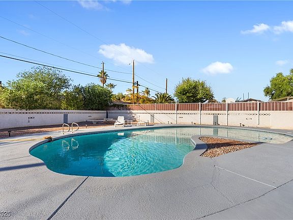 Over half-an-acre of land sits under this 4 bed/3 bath, ~2600 sq ft. ranch home w/ refreshing pool. A true gem with TWO original wood-burning fireplaces in excellent condition and meticulously maintained. This modernly vintage Vegas gem with circle driveway motor court is not to be overlooked. Stone's throw away from the acclaimed Siegfried & Roy estate on the same street. Near other well preserved properties as well as brand new development in the area. Residential, mixed-use and commercial projects in the surrounding areas which leads to increased appreciation values! Very stable, quiet area where mid-century properties don't always come up for sale. NO HOA! Take advantage of this rare opportunity to own something that is worth it.