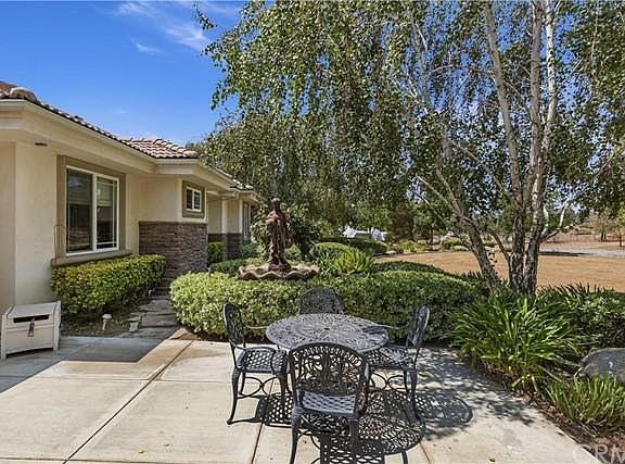 First time on the market. Located in the beautiful Gavilan Hills just south of Riverside. Horse ranches all around this equine friendly neighborhood with some of the best riding trails in So. Calif. Custom built single story home, built to owners specs. Truly a Turn Key Home. Perfect home and property for the active family. Whether you want a horse ranch, gardens and orchards, or just peace and quiet, this 4.79 flat acres is for you. Zoned for horses or agriculture. Ample areas to set up your own equine design of your dreams. Arena, barn, work out, trailer and truck parking, separate electric gated entrance, utilities and water available all around the property. The home was built with 2x6 walls, fully insulated, and fully sheer walled. Owner hardly ever has to use the AC on the hottest days. Roof has a Radiant Barrier over entire home. The eves are 30" to provide greater shade. Oversized foundation footing for greater stability. Full copper plumbing running overhead, no slab leaks. 10' ceilings through-out. The primary bedroom offers privacy and comfort. The kitchen is a chefs dream with an abundance of cabinets, drawers, and counter space. Large work island with sink. Arched doorways and doors. Many interior custom features. Over 400 trees of various types all around the property. Certified pad for a large barn, workshop, or ADU. 1/4 mile to the 325 acre Hartford Springs Reserve, open only to hikers and horse back riding. This property is waiting for someone to create that special horse ranch or private retreat in a beautiful location. Don't miss the opportunity.