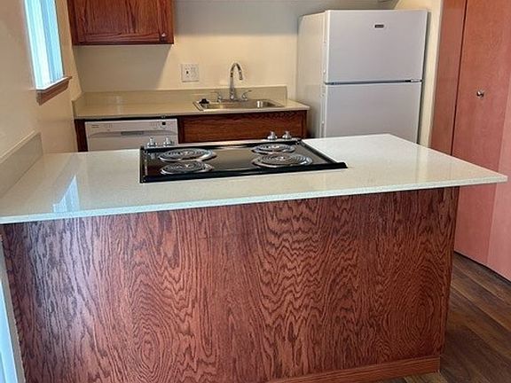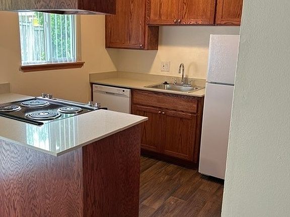 Beautiful remodeled, 2 bedroom 1 bath. Custom build cabinets, quartz counter tops, single level duplex style, private fenced backyard. Property Seasonal Heated swimming pool, sports court, playground with picnic tables. Wonderful community, 1 block from Safeway, BiMart, Walgreens, USBank. Trimet stop at front of property.