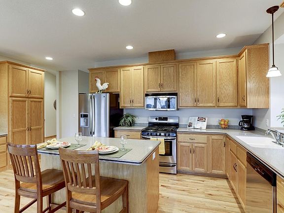Pristine 5BR, 3BA Rambler Tucked in the Heart of Gladstone! Inviting Great Room w/Stylish Stone Fplc, Vaulted Ceiling. Open Center Island kitchen w/SS Appls, Corian Countertops, Planning Desk, Pantry, Expansive Eating Area, Gorgeous Hardwood Floors. 3 BR's Main Floor Owner's Suite w/Private BA & Walk-in Closet. Lower Level w/2 Large BR's, Spacious Amusement Rm w/Corner Fplc, Built-in Bar. Storage Rm, Heated Garage. Beautiful Lot w/18x16 Deck, Irrigation System. Rush Creek Elementary School.