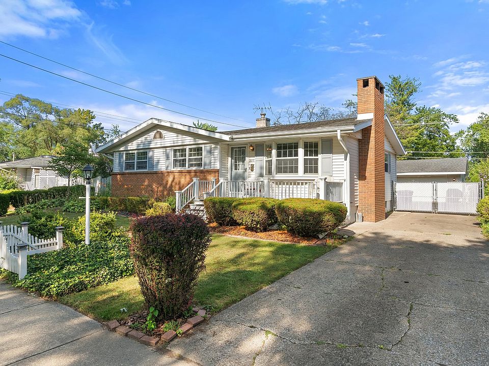 Welcome home to this charming ranch home in the heart of Lansing. Within walking distance to Lansing's beloved Erfert Park, you will fall in love with everything this home has to offer. Approaching the home is a quaint front porch that is the perfect spot to welcome guests. Heading inside, you will love the original hardwood floors and gas-burning fireplace that makes the living room the center of the home. Enter the spacious eat-in kitchen with ample room for a large table for plenty of guests. A large pantry and open staircase to the fully finished basement are those extra touches that make this home special. Down the hall the owner's suite is spacious and adorned with double closets, a reading nook, and an en-suite bath with step-in shower. The two additional main floor bedrooms are sized perfectly and access the full bath off of the hallway. In the finished basement you will feel right at home with the finishes including crown molding, can lighting, and the second gas fireplace and it's own bathroom with a step-in shower. A fourth bedroom/den (no egress window) is off of the laundry space and makes a cozy and private space for guests, office, or music room! Heading outdoors, the sprawling covered back porch will be your perfect evening getaway to unwind from the day. Overlooking a custom brick paver patio that is perfectly set up for a bonfire and chairs! Detached 2.5 car garage and fully fenced yard as well! So many wonderful memories to be made in this home.