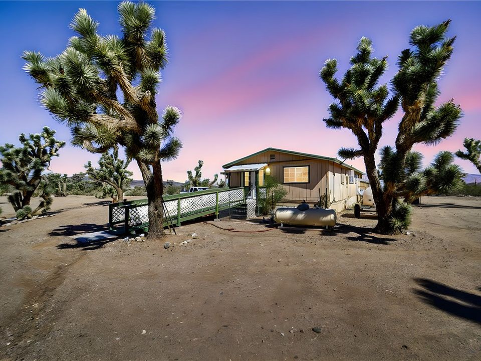Welcome to 18852 N Spur Dr located in Lake Mohave Ranchos of Dolan Springs, Arizona! This property showcases a fully furnished 2012 custom-build, stretching 1,145 sq feet of comfortable living space! Embrace cost efficient and self-sufficient living with fully owned solar panels, a leased propane tank, three storage sheds, a single carport, full property fencing, 500-gallon water tank with a hauling trailer, low maintenance desert landscape and a 2004 Gulf Stream Ameri-Lite travel trailer complete with RV hookup and transferable title ideal for guests or investment opportunity. Tucked among beautiful Joshua Trees on 1 acre, this property offers the perfect blend of comfort, convenience and outdoor adventure. Step inside to a bright, open floor plan crafted for everyday ease and comfort. The walk-through kitchen comes fully equipped with a gas stove, abundant cabinetry, generous pantry space, two refrigerators and a deep freezer for extra storage. Durable laminate countertops and flooring make upkeep simple, while ceiling fans and contemporary fixtures lend a crisp, airy atmosphere. Efficient wall-mounted heating and cooling units ensure year-round comfort and energy-conscious living. In the living area, experience plenty of natural lighting with multiple dual-pane windows and delight in a freestanding electric fireplace, plush carpeting, large comfy couch and black screen TV. The sliding glass door leads to a side deck with a custom wheelchair ramp and small fenced-in area perfect for smaller pets or garden. The primary suite offers dual sliding-door closets, a skylit bathroom with a walk-in shower and private yard access. An in-house laundry room has a utility sink and second bathroom with back door access. Out front, a spacious enclosed front patio frames sweeping mountain views and dramatic desert sunsets. Situated just 16 miles off U.S. Highway 93, this haven feels secluded yet remains convenient to Dolan Springs amenities restaurants, shops, postal services and some of Arizona s best adventures: 36 miles to the Grand Canyon West Rim and Lake Mead s South Cove/Sandy Point, 42+ miles to Kingman and Bullhead City/Laughlin and 90 miles to Las Vegas. With hiking, horseback riding and ATV trails right outside the gate, this turnkey property delivers a serene slice of high-desert living with the freedom to roam and invest!