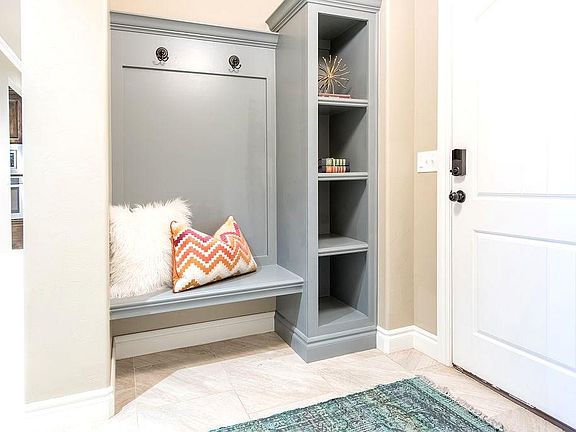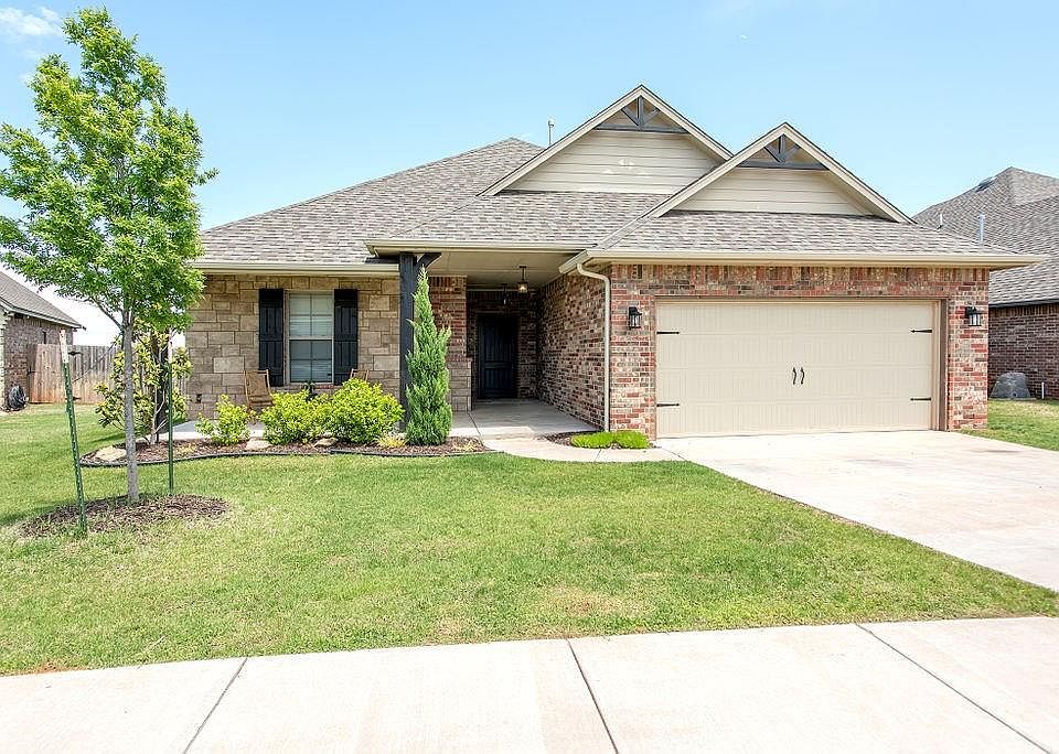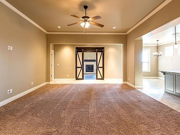 Rare, premium greenbelt lot & nearly new Grove charmer with rustic and modern tendencies! Oversized covered porch with massive beams, stone accents and black shutters. Inside, appreciate the form & function of the built in drop zone. Immediately in front of you is the ample size main living room that opens to the kitchen. Behind barn doors is a secondary living space with fireplace, vaulted ceiling, & views of the greenbelt. The kitchen features substantial counter space, stainless steel appliances, including a gas cooktop and vent to the exterior for the serious chef. Tucked between the door to the garage and the kitchen is a built in desk & cabinetry that would satisfy almost any home office needs. The 2 guest beds & hall bathroom are separated from the master suite. The master suite has everything you would expect; from walk in shower & closet, to double vanity & whirlpool tub. Enjoy shaded evenings on your back porch, overlooking the greenbelt & trail. STORM SHELTER & sprinklers!
