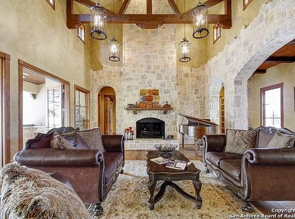 Panoramic views for miles from this hilltop masterpiece by Robare Custom Homes. Nearly 6000 sf, 5 BR, 4 FB, 1 HB, 6 car garage & lovely 1/1.5/1 guest house. Luxurious finishes in every room incl:natural stone floors, arched doorways, custom cabinetry, cedar beamed ceilings, & craftsmanship of the highest level. Master retreat features exquisite spa bath, winding staircase to private study, & his/her closets that have to be seen to be appreciated. Outdoor paradise w/pool, kitchen, & expansive outdoor living.