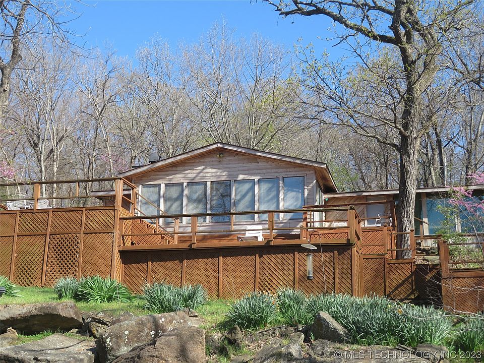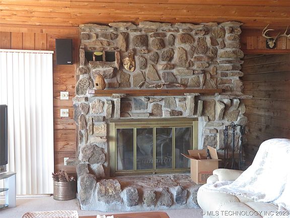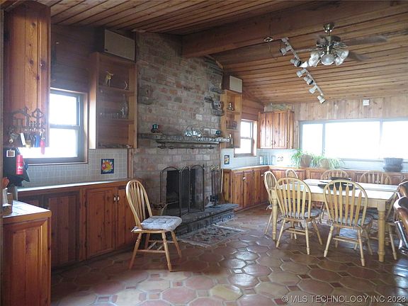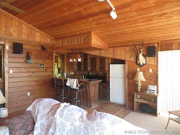 Do you dream of being on the lake? Here is your chance!! Charming Lake Home, Woodsy look with both smooth and rough cedar! Beautiful views of the Lake from the Great Room through the wall of windows!! The Great Room is also equipped with a Wet Bar that includes a refrigerator for entertaining. The Great Room has awesome beams and a large Native Stone Fireplace. The large kitchen has quaint cabinets and eating bar. In addition to the kitchen is a huge Dining Area with table space for 10-12. The dining area includes a JennAir Cooktop and Grill Top as well as two Toastmaster Warming Drawers. The dining area also has a beautiful Vintage Fireplace with brick dated back to 1906 with a backward "S" in the word Tulsa. Finishing out the home is 3 bedrooms and 2 1/2 baths. The Roof was replaced in 2019. The outdoors is the BEST!! The back faces the Lake with with lots of multi level decking for your enjoyment, sunbathing, cooking out or just hanging out with friends enjoying the lake view and the fabulous sunsets! BUT THAT"S NOT ALL!! This home is lake frontage, water access with your own personal two slip boat dock equipped with electric that is Solar and Wind powered. This is truly a RARE FIND! An unbelievable Opportunity. Also, included is a 30 x 30 Workshop with concrete floors, ceiling fans and electric, as well as a shed with electric. Don't miss this one!