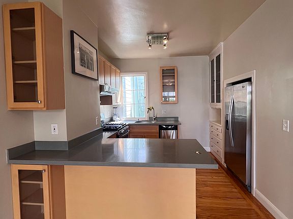 This recently updated unit features a modern kitchen with new cabinets and a dishwasher, gleaming hardwood floors, and a beautifully remodeled bathroom. The building offers a convenient coin-operated laundry facility, and residents share access to a spacious backyard enjoyed by only five units. Ideally located, with a streetcar stop right in front, and just a short walk to Safeway, shops, and everyday conveniences.