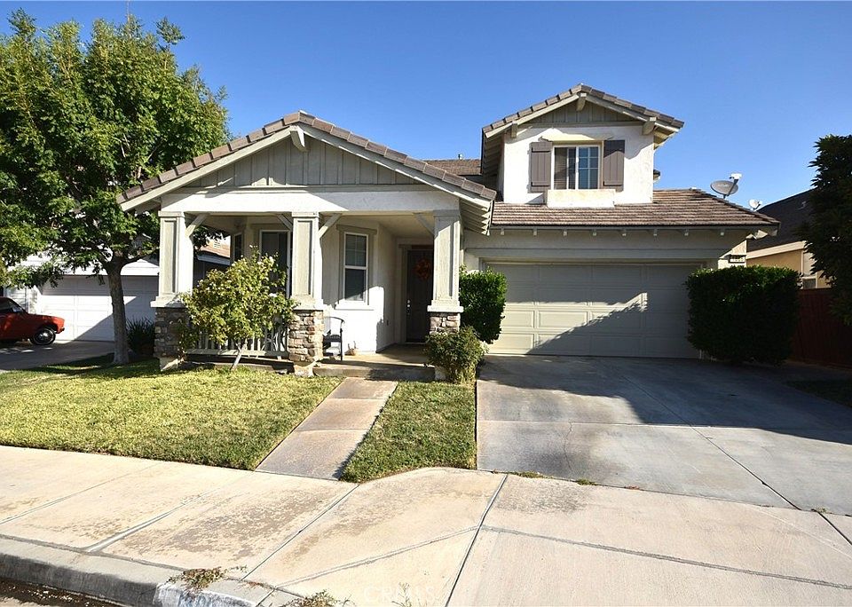 Another home for sale at village Of Avalon Community, green belt right behind with incredible vies, two levels, single door entry, well maintained, this property looks like a model home, super clean, home future's as follow: one bedroom one full bath down stairs and three bedrooms on the upper level two full baths, formal entry, living area, formal dinning, open floor plan, family room blinds through out, double panel windows, gourmet kitchen with litchen island, granite countertops, appliances, cozy fireplace at the family room. Ceramic tile is placed throughout the first floor 2nd floor with upgraded carpet, master suite with walk-in closet, master bath, shower and dual sink cabinet shower and bath tub, all 4 bedroom with ceiling fans, laundry room continuously located upstairs on its own individual room, hall bath nearby all other three bedrooms two extended car garage, back and front yard fully landscaped and rear cover patiowith, near by there is a waking trail, greenbelt, sidewalks, Lake Perris State Recreation Park & fairgrounds, in addition this property also have the rights for buyer's to enjoy the amenities of the HOA, pools and spa, club house, tennis and basketball courts, clubhouse, barbecue security patrol car. A must-see. pride of ownership, must see!