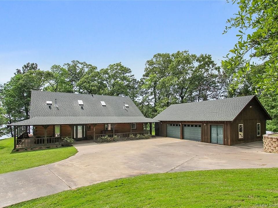 This amazing lakefront home is the perfect place to enjoy the stunning views of Toledo Bend Lake and all the activities it offers. Whether you are looking for a quiet getaway or an exciting outdoor adventure, this property offers the perfect combination of peacefulness and convenience. This custom Satterwhite log home features 3 bedroom, 3 1/2 baths with close to 3400 sq ft of living space on a gorgeous 5.35 acre parcel with over 500 ft of waterfront property snuggled in the woods & overlooking the main portion of Toledo Bend. Very tranquil & peaceful setting but still convenient location with spectacular views of the lake. "SUNSET LODGE" is what the sellers named this lakefront beauty because of the magnificent sunsets that can be seen from the living area, loft & back porch areas. This home has an open floor plan that is perfectly laid out and ideal for entertaining large crowds. The main living area has vaulted ceilings with wood beams, fireplace & has lots of natural light coming in from all the windows across back of home. Chef's dream kitchen with abundance of custom cabinets, large eat-in bar area, upgraded stainless appliances with 6 burner gas stove, 2 drawer dishwashers and beverage cooler. Fantastic downstairs master suite with clawfoot soaking tub, custom tile shower and walk in closet. There are multiple living areas providing for great flexibility, allowing for both formal and informal gatherings. Some of the other amenities include 2 tankless propane H2O heaters, zoned heating and air with 3 units, 20KW generator, central vacuum system and energy efficient appliances. The property also has a guest cottage with kitchen and bath and an additional bunk room with 1/2 bath. There is a wood dock on the lake and a large 2 car garage with an additional 10x28 shop area. The 7 zone sprinkler system for the natural landscaping and mature trees is part of the low maintenance of the property. You can add more cabins and use as a commercial venture also! This property is currently furnished and being used as a nightly rental and generates generous amount of cashflow yearly. This home is being sold fully furnished.