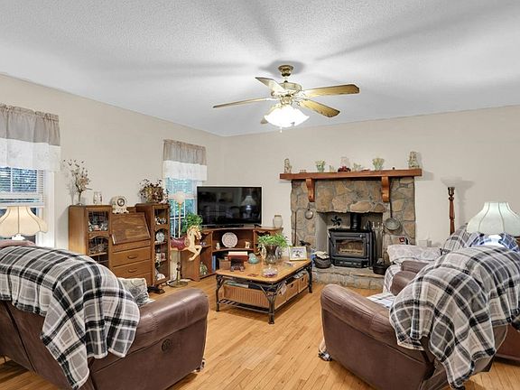 Huge Reduction! This 4BR 3BA home is truly a beauty with custom touches inside and out. A private oasis and just minutes to town. Imagine rocking on the wrap-around front porch listening to the sounds of the water feature in the Koi pond. Walk into the large living room opening to the eat-in kitchen featuring gorgeous granite countertops and stone-tiled backsplash. Grab a book and relax in the sunroom with a custom wood floor. The main floor also features a large master bedroom with a beautifully tiled shower, walk-in closet, an add'l bedroom, and laundry room with office. The lower level features a great room with 2BR and baths. Perfect for large families or guests. Entertain in the cozy backyard with beautiful landscaping and custom rock paths around the entire home. Don't forget to check out the enclosed carport with workshop. This might be your forever home.