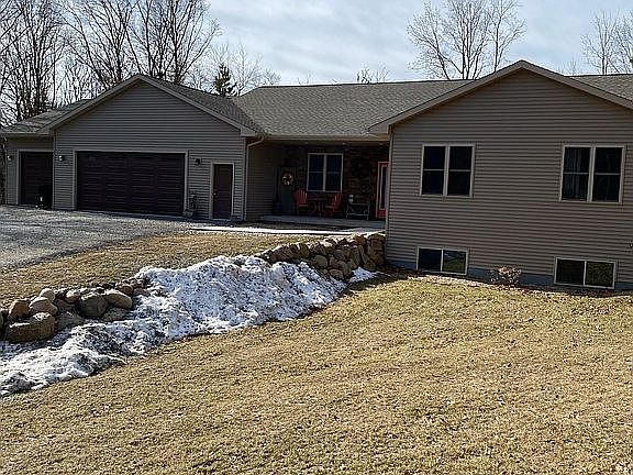 Beautiful home on quiet cul de sac in Polonia. Built in 2018, this home features almost 2300 sq. ft. on one floor. First floor includes 4 bedrooms in split layout, 2.5 baths, open concept kitchen/dining/living area, large laundry room and mud room, huge walk in pantry, and bonus room that can be used as an office, home school room, music room, or craft room. Full sized basement is ready for your personal touch with 3 egress windows and a bathroom rough-in. Home includes many high end finishes: gas fireplace, granite countertops, custom cabinets with soft-close doors and drawers, high capacity well pump, full slab kitchen island, urinal in the half bath, and wiring for future generator. The garage is 3 stalls, extra deep, fully insulated, with a second staircase to the basement. Home sits on a large (1.82 acres) wedge shaped lot at end of street, providing huge back and side yards for playing, an extra garage, or any other wishes. Yard includes a large patio, boulder terracing, and wooded area with walking path. Original floor plan included to get basic idea of layout, though minor changes are not reflected.