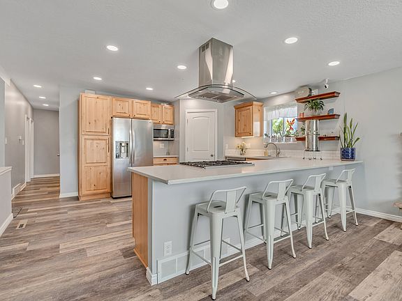 Fully landscaped yardWhite countertopsCozy fire pit areaOpen floor planFruit and shade treesBeautiful cabinetsUpdated flooring