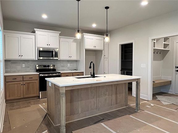 Brand new floor plan! Spacious 3 Bed 2.5 Bath with a lake view! The dining room can be converted to an office or 4th bedroom. Incredible prep pantry upgrade with built-in cabinets and stained top. Featured trim wall in the hallway and master bedroom. Quartz vanity tops upgrades, matte black faucets throughout. Lighted vanity mirror at the master bath make-up table. Custom shelving in the master closet. Nearing completion! Taxes and sqft. are estimated.