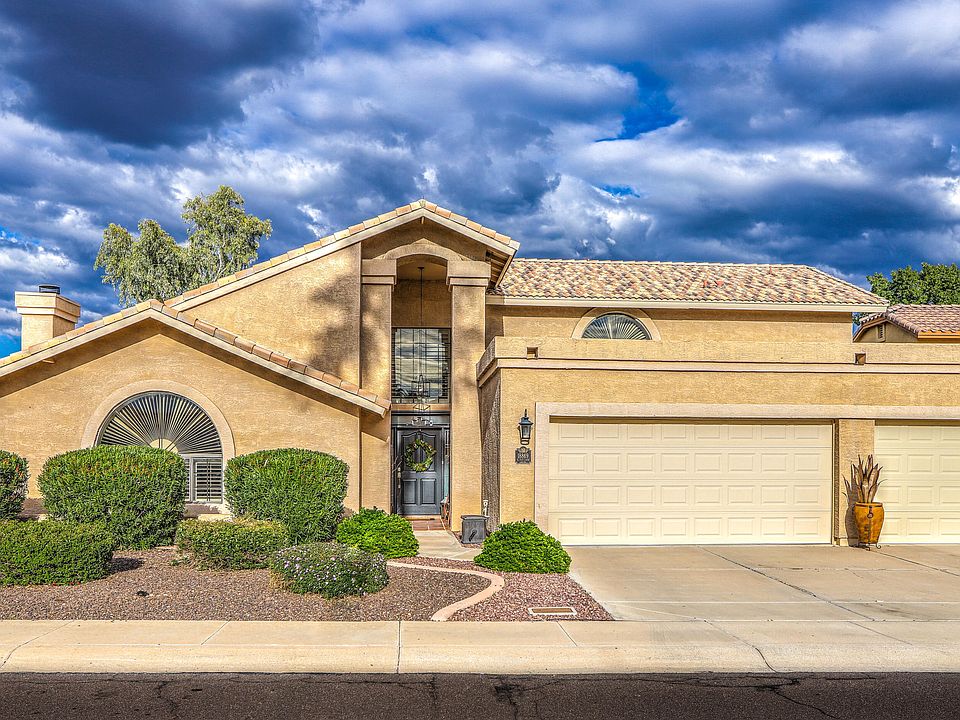 This beautiful Arrowhead Ranch home boasts golf course and mountain views, and offers comfort and style for perfect Arizona living. As you step inside, you find yourself in a bright and airy foyer that leads to an expansive great room with plenty of natural light. The large kitchen has granite counters, stainless steel appliances and ample storage.
