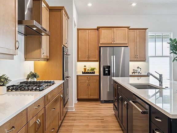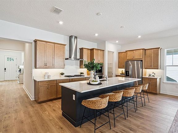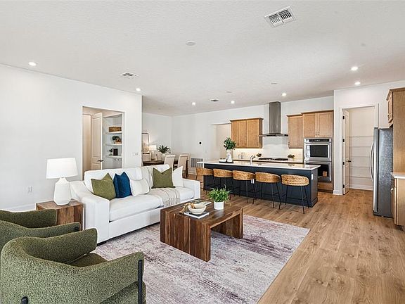 The Mackinac is a stunning single-story home featuring 10’ ceilings, an open-concept kitchen, and an expansive Great Room. The entry is light and bright with french doors leading to a beautiful study overlooking the expansive greenspace. Featuring a split-plan with private owner’s suite with a generous walk-in closet and super shower, two guest bedrooms and one full bathroom. The kitchen offers a 36" Natural Gas Kitchen-Aid cooktop, two full-size ovens and microwave in the base cabinet of a spacious island with a breakfast bar overlooking the great room and dining room. The French Doors from the Great Room lead to your expansive brick-paved extended lanai, perfect for outdoor living. The Mackinac also includes a 2-car attached garage and powder bath convenient for entertaining and everyday living.