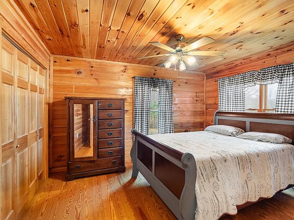 Escape to 1887 Grave Bridge Rd in Sandy Level, VAa 57-acre retreat offering privacy, recreation, and convenience. Just a short drive from Smith Mountain Lake and essential amenities, this stunning property features a 2,271 sq. ft. log home with 3 bedrooms, 3 bathrooms, possible room to be used as 4th bedroom in basement! The natural wood charm can be seen throughout the whole house especially on the main level which includes a cozy living area, dining room, full bath, and laundry, with a large deck for taking in beautiful mountain views. Enjoy a private 1-acre pond with a dock, a 3-acre food plot with a hunting blind, and ample storage in the 30x40 metal shop and single-car log garage. Whether fishing, hunting, or simply unwinding, this property combines modern comforts with the serenity of nature. Don't miss your chance to own this exceptional retreat!