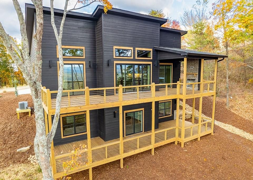 Just imagine sitting on your back deck enjoying your morning coffee or evening toddy looking out at a million-dollar view! Look no further than this new construction, modern rustic home! The home is built on two levels with a total of over 2,400 square feet of finished space including 1 bedroom and 1-1/2 baths on the main, and 2 bedrooms and 1 bath on the terrace level. The terrace level also contains a bar area, and large game room/family room with adjoining deck. The main level features 2 fireplaces with gas logs, one being in the large open family room and the other out on the main level deck. There is over 1,000 square feet of covered decks and porches. This home features many upgrades including granite countertops, stainless steel appliances, gas fired tankless water heater, tile bathrooms, LVP flooring throughout, as well as tongue and groove ceilings with rustic beams and more. Outside you have a sodded front lawn and concrete drive. You must see this home! The view is incredible!