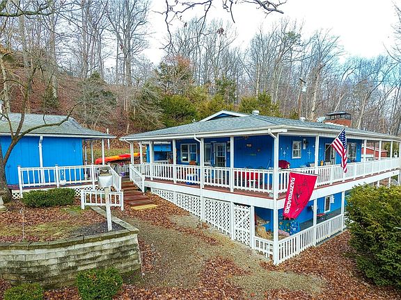 This is the house by the lake that you have been looking for. This home has 3 bedrooms and 2 and a half bathrooms on top of the extra room that can be used as a home office or made into a 4th bedroom. You have exquisite year round lake views from the wrap around decks on both levels and the same can be said for the living rooms on both floors. The open kitchen flows right into the dining area and all of its extra storage as well as the living room. The owners suit is on the main floor with a fully remodeled full bath and a half bath off the living room. The other 2 bedrooms are located downstairs with another remodeled full bath. Both floors have living spaces with gas log fireplaces and space to make memories for years. The home also has an amazing outdoor area. Not only does it have a detached garage, but also a plumbed greenhouse, an outdoor sitting area with a fire pit, a wired in Generac generator and metal building perfect for a golf cart to get to your personal slip, which conveys, in a shared dock.