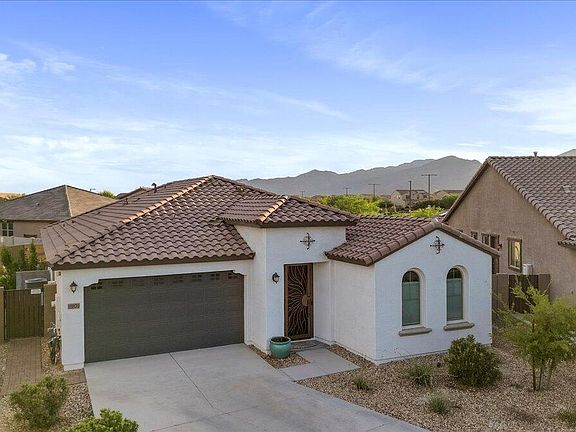 Stunning Sage Floorplan on Oversized Lot with Pool, Mountain Views & Luxury Upgrades! Resort-style backyard with mountain views, massive pool, and expansive paver entertaining spaces make this 4BR + den, 3BA home truly stand out! The popular Sage floorplan offers an open great room, gourmet gas kitchen with oversized island, and a versatile front den/office/family room that can easily convert to a guest suite. The private primary suite is split from the secondary bedrooms for maximum comfort. Step through the multi-sliding doors and enjoy one of the largest lots in the community, perfect for both everyday living and unforgettable gatherings. All just minutes from White Tank Mountain Park's hiking/biking trails and the new Oasis Aquatic Center!