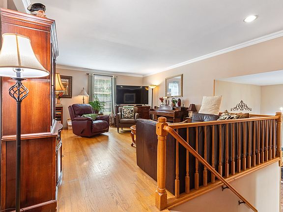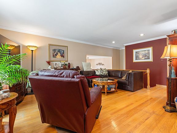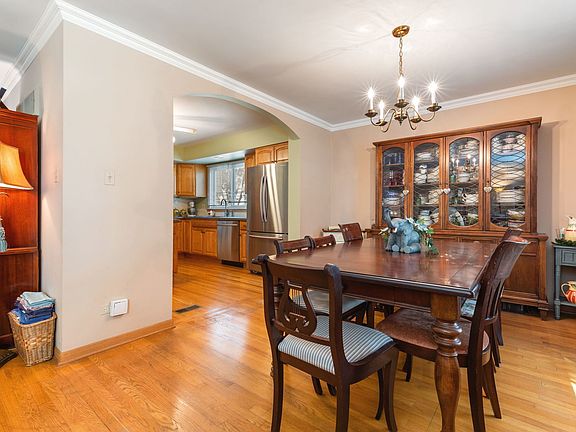 The kitchen has been beautifully updated with maple cabinetry, a convenient pantry, and a spacious peninsula offering plenty of counter space. Hardwood floors flow throughout the upstairs, complemented by elegant crown molding on the main level. Enjoy the quality of Andersen Windows on the main floor and lower-level patio doors. The lower level is designed for entertaining, featuring a generous family room with an open layout and cozy gas fireplace. It also includes a full bath, bedroom, laundry room, and an area with sink and cabinetry. Possible In-law option. Patio doors provide a private exterior entrance to the backyard. Located just steps from the neighborhood grade school, this home also includes a fenced dog enclosure just outside the garage for added convenience.