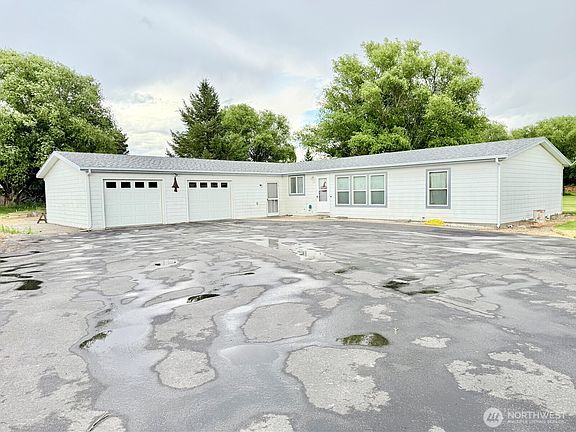 Okanogan - 55+ Community! Manufactured home ONLY. 2 car attached garage & paved driveway. 4 bedroom/1.75 bath. New 2024 Comp Roof & gutters. Storage, storage, & more storage! Thoughtfully designed storage throughout entire home w/plenty of kitchen cabinets & countertop space, breakfast bar, dining room, three bedrooms/1 full bath on south side of home, living room, primary bedroom w/enormous walk-in closet & jack & jill three-quarter bathroom to laundry room w/utility sink and additional cabinets! Lean-to for lawn mower storage. Raised garden beds. Septic. Shared well. HOA includes water/garbage/snow removal/road maintenance. CASH ONLY $225,000 MLS-2386126/M-3684