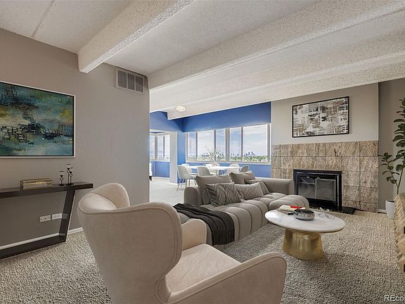 Welcome home to this incredible 2 bed, 2 bath condo on the 10th floor of Wellington Square, an urban oasis in the heart of South Denver. Secure building with elevator access, located in a vibrant neighborhood, this condo is perfect for those who crave both convenience and serenity. This spacious corner unit has wall to wall windows with stunning mountain views as well as city views! Wake up to breathtaking expanse of the Rocky Mountains and unwind with glittering Denver city lights at night—all from the comfort of your own home. This condo features include a full 2 bed, 2 bath unit, spacious family room with a wood burning fireplace, designated dining area, enclosed sunroom/patio with plenty of room for additional sitting area or office space. The primary bedroom has an attached en-suite full bathroom, 2 closets, the second bedroom is just as spacious and is adjacent to the second 3/4 bathroom. Unit has been newly painted, updated light fixtures and bathroom updates. Great storage in the unit, as well as a storage locker in the basement near the covered attached parking garage. Unit comes with one reserved space in the garage and 1 storage unit, there is a shared laundry room with trash shoot on each floor. Beyond the comforts of your unit, Wellington Square offers an array of amenities, including secure access, elevators, updated lobby, party room, indoor pool and hot tub, fitness area/gym, outdoor b-b-q, and patio space as well. Minutes from University of Denver, light rail, many restaurants, shopping as well as easy access to I-25 and downtown Denver and Cherry Creek. This is a must see, please come take a look!