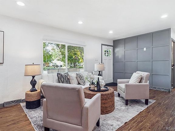 With beautiful modern updates, this home offers a total of 1145 finished square feet- including the finished detached studio, converted from a garage. Thoughtful kitchen design features 5-burner gas stove, Samsung appliances, butcher block and onyx counters, peninsula with seating, and classic white cabinets. Open floor plan combines the living room and dining room, with an oversized front window bathing the home in afternoon sunlight. Primary bedroom accommodates a king size bed, and updated bath sparkles. Full size washer and dryer are included. Outside you'll find mature trees, a covered back porch, and a yard awaiting your landscaping design. The carriage house provides an additional 271 sf, great for a studio or office. Alternatively the space can be turned back in to a 1-car garage by adding an overhead door. The covered carport is attached to the home and accessed by the front driveway. Completed in 2021- Roof, siding, windows, electrical throughout, plumbing throughout, Furnace, AC, modern walkway. Completed by the seller in 2021/2022- partial new privacy fence, supporting piers (with warranty), vapor barrier in crawl space, washer, dryer. Wonderful location just a block from Sanderson Gulch Trail, minutes to Harvey Park, and surrounded by independent restaurants- a foodies delight. Easy drive to Bear Creek Lake Park, Belmar shopping center and Whole Foods, and quick access to highways, this home in an up and coming area of Denver is a gem.