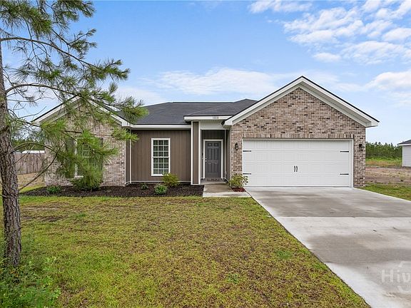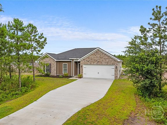 This better than new 4-bedroom, 2-bath home sits on a sought after .72-acre lot with great curb appeal, featuring a brick front and low-maintenance vinyl siding. The open floor plan connects the living, kitchen, and dining areas—perfect for entertaining. Featuring vaulted ceilings in the great room, beautiful wood cabinetry in the kitchen, dining area overlooking the private backyard, and abundant storage throughout. The spacious owner suite offers a walk-in closet and private bath with dual vanities, garden tub, and separate shower. Built in 2023 with a transferable 2/10 warranty for peace of mind. Bonus: riding lawn mower included! Located near Fort Stewart, just minutes from top Long County schools and Hinesville’s dining and shopping. City convenience meets small-town charm!