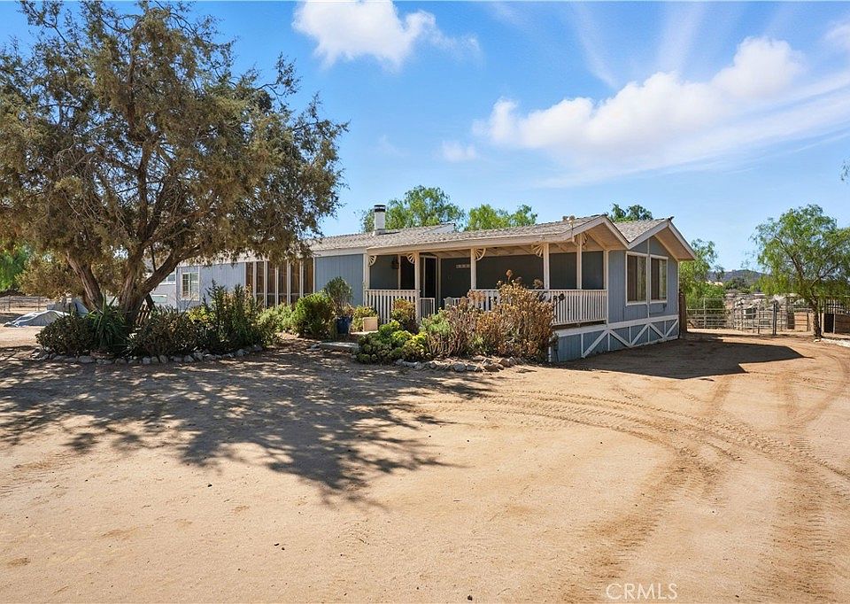 Welcome to this incredible horse property in the highly desirable Gavilan Hills community! Sitting on over 4 acres, this property is designed for both comfortable living and premium equestrian use. The main residence is a spacious manufactured triple-wide home offering generously sized bedrooms and endless potential with a little TLC. A second unit on site, currently used as storage, includes a bathroom but is not on a permanent foundation.