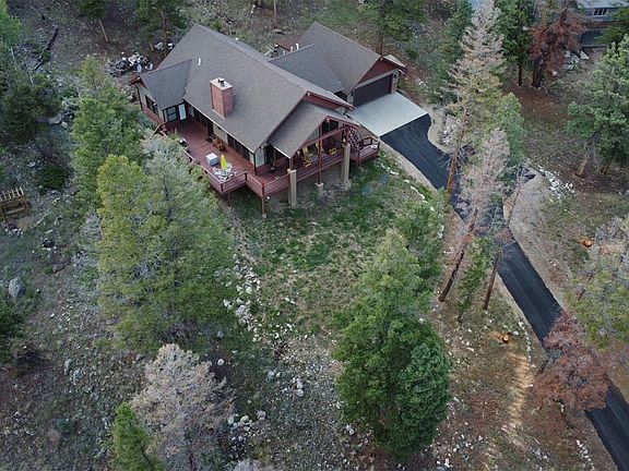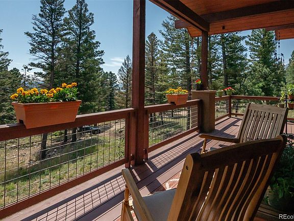 This stunning custom home showcases a Mountain Contemporary design with exquisite accents throughout. The vaulted ceilings feature hand-hewn beams, beetle-kill tongue & groove pine, and a custom hand-carved log stair railing. As you enter, you are greeted by a grand rock wood-burning fireplace and breathtaking views of the surrounding open space to the south and the National Forest to the west. The open living area is ideal for entertaining family and friends, while the custom kitchen boasts a large island, a spacious walk-in pantry, convection oven, gas stove, and a warming drawer. The dining room, with its large windows, opens onto a generous wrap-around deck that creates a magical ambiance. The master bedroom offers direct access to the wrap-around deck, perfect for enjoying moonlit evenings. Adjacent to the kitchen, there is a nice size office, and the main level also features a utility room with cabinets and a sink. The lower level includes a sizable great room, two bedrooms, and a full bath. A flagstone walkway leads from the house to the oversized detached two-car garage, finished with insulation and drywall. There is a nice workshop area and additional storage space above. The attached ATV garage on the west side includes a nice gardener's potting area. The asphalt driveway completes the property, providing convenient access. Enjoy direct access to the National Forest from your back door, where you can ride your ATV's, enjoy all the hiking trails, hunting, cross-country skiing, and secluded privacy. Conveniently located just 15 minutes to town. Natural gas is a big plus. Central Water system. Internet is Aristata. Extra 50 amp service in the garage. Very low traffic because it's at the end of Monte Escondido Drive. Call now to schedule a private showing.