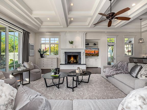Stunning home combining elegance, functionality, and luxury in every detail! This 2-story gem is designed for comfortable living & entertaining with its 5-bed & 4.5-baths. An inviting front porch leads you to the bright interior adorned with recessed lighting, plantation shutters, & a harmonious mix of wood, tile, & plush carpet flooring. The living room offers a coffered ceiling, a beautiful fireplace, & sliding doors to merge the indoor/outdoor living areas. The heart of the home is the fully equipped kitchen, complete with SS appliances, ample counters, gorgeous cabinetry, & an island w/breakfast bar, which opens to a sunny breakfast room. Don't forget about the formal dining area for larger gatherings & the convenient wine bar!