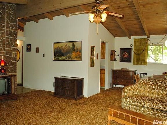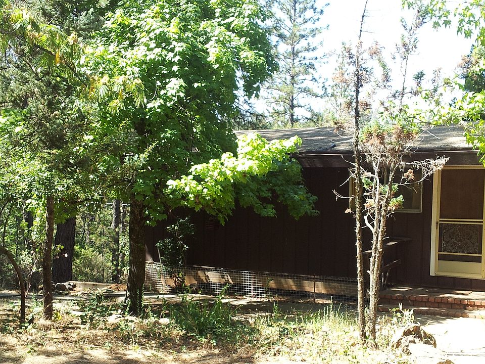 Grandpa's Cabin in the woods. This home was a family retreat for many years creating happy memories. Open high ceiling living room with large windows. Office room has been used as a 2nd bedroom. Large basement area for workshop or storage. Area for gardens. Private Water district. Pool, decks, walkways need work, will need cash or possibly rehab loan to purchase.