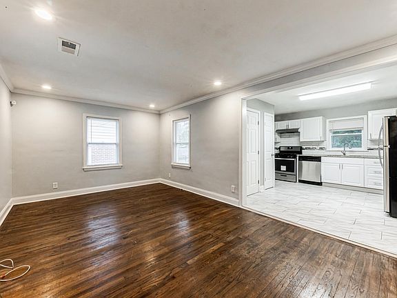 Large fully fenced backyardHardwood floorsWhite kitchenStainless steel appliancesNew cabinetsTile backsplashGranite countertops
