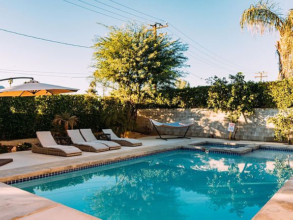 This stunning Palm Springs home is available for long-term lease. It features 4 bedrooms and two full bathrooms, a large kitchen and solar to keep those electrical costs down. The spacious backyard area boasts a large pool, jacuzzi, BBQ, and a cozy lounge area, all set against breathtaking views of the Santa Rosa mountains. Nestled in a quiet neighborhood between Hwy 111 and the Mid Valley Parkway (also known as Dinah Shore) it borders both Tahquitz Creek Golf Resort and Cathedral Canyon Golf Club and is close to golfing, shopping, and top-notch restaurants. Conveniently located 12 minutes (about 5 miles) from downtown Palm Springs and only 7 minutes (about 3 miles) from the Palm Springs International Airport. This home is beautifully furnished, but the owner would consider storing the furniture in the garage with the right terms. Owner pays for landscaping and pool maintenance and solar lease. Tenant pays for all utilities and reimburses owner monthly solar lease cost.
