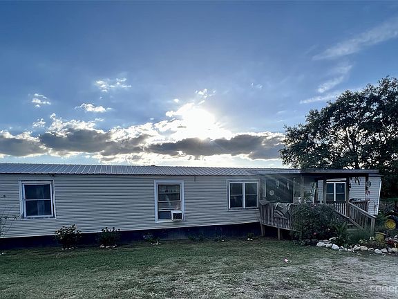 Just what you have been waiting for! Privacy, seclusion, fenced pasture, 5.60 +/- acres w/water source, 6 ft deep stocked w/Brim, Catfish & White Bass. Upon arrival you are greeted w/a spacious covered front porch for hours of sitting and relaxing. This manufactured singlewide with open concept floor plan has 2 beds and 2 baths with 980 square foot of living space. A sunroom has been added for extra indoor sitting and entertainment. The huge covered back porch is a great place to relax, entertain friends and family or just sit and enjoy the sunset while watching the chickens peck around and the farm animals in the field. All these combined makes for a great hobby farm or mini homestead. If this isn’t enough, visitors from out of town with an RV or Camper can enjoy their own privacy with the option of two RV/camper hookups with their very own water and sewer access! More pictures to come.