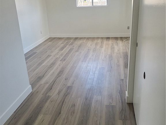 Fantastic all new gray/tan wood plank floors, new baseboards, new scraped ceilings, new bathroom vanity, new Shaker style kitchen cabinets, new quartz countertops in kitchen and bathroom, new faucets, new door hardware, new stylish interior doors and new light fixtures. This place looks like a model on the inside. The kitchen opens to a nice dining area and a huge living room. The master bedroom is also massive (large enough for a full office in bedroom). A shared two car garage ( you get one side) with a very large private and lockable storage room.