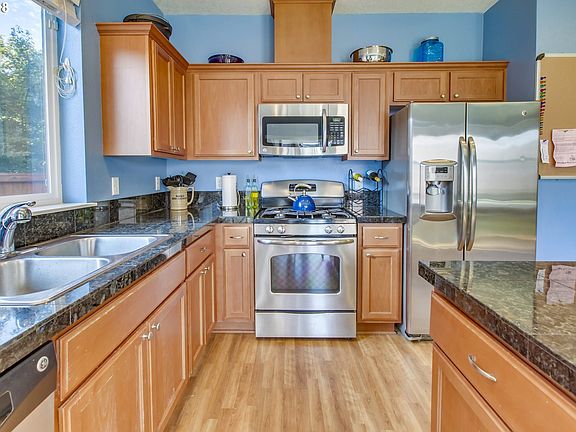 Open and airy floor plan, Gourmet kitchen w/island, granite counters, pantry and stainless steel appliances. Slider off kitchen leads to fully fenced yard. Bedroom and full bath on main. Large master with full bath, double sinks and walk in closet. Upstairs laundry as well as 2 additional bedrooms and 1 bath. Walk to neighborhood park and John Mclaughlin elementary.
