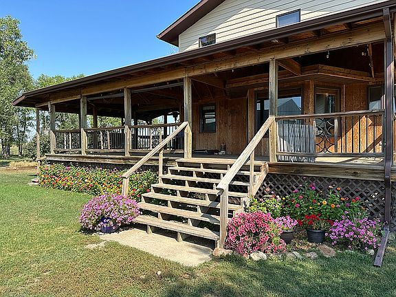 Multiple functional outbuildingsSpacious wrap-around covered porchFlat pasture area