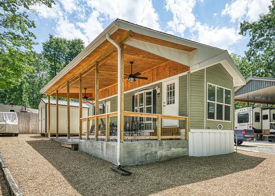Nestled in the picturesque TN countryside, we have a charming 1-bed/1-bath park model available for your perfect vacation getaway or your new simplified lifestyle. This cozy & well-maintained get-away offers a comfortable retreat in the heart of nature. Step inside to discover a thoughtfully designed space that combines modern convenience with rustic charm. The living area features plush seating, providing a relaxing spot to unwind after a day of exploring the nearby attractions. Adjacent to the living area is a dining nook, perfect for enjoying meals or planning your adventures. The kitchen is fully equipped with essential appliances, allowing you to prepare your meals with ease. Outside, enjoy morning coffee on your covered patio. Experience the epitome of leisurely living at Holiday Out! Schedule your showing today and prepare to embrace a slower-paced, fulfilling lifestyle that will capture your heart.
