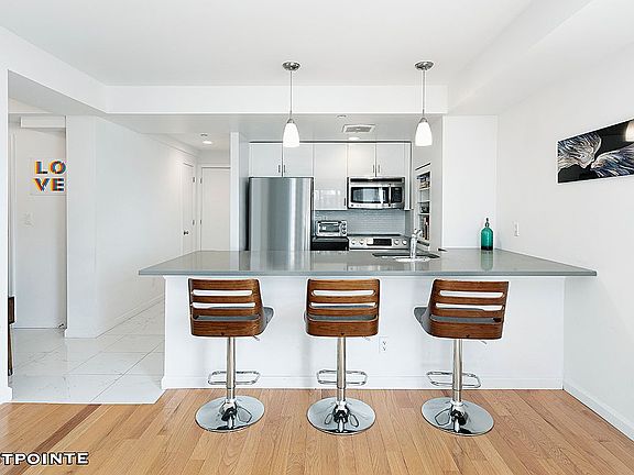 Residence 10D is a spacious 1BR loft style condo with a sleek interpretation of quintessential New York City living. An open floorplan maximizes space and natural light while contemporary finishes like hardwood floors and double-paned windows bring a level of sophistication and refinement to a neighborhood known for its vibrant spirit and gritty attitude. The kitchen is equipped with clean white cabinetry and a suite of stainless steel appliances from Bosch and Fisher & Paykel. The bathroom has been recently renovated and features subway-tiled walls and an easy-to-clean tile floor. A GE washer/dryer is also conveniently included as part of the apartment. Designed by OTL Enterprises the same firm whose passion and vision were behind The Blue Building of the Lower East Side. The Calyx is a full service condominium offering 35 residences dressed with groomed interiors, a fitness facility and a rooftop lounge boasting panoramic views of Manhattan. Pairing sophistication with the spirit of the East Village. The building rises 10 stories and sits on Avenue C, an East Village strip lined with tasteful restaurants and cafes and located only a few blocks away from Tompkins Square Park and popular nightlife scenes. The Calyx is for those seeking to capture the energy of an evolving neighborhood, to experience the edge of the city's past and the shimmering promise of its future. Nearby public transportation include the L train.