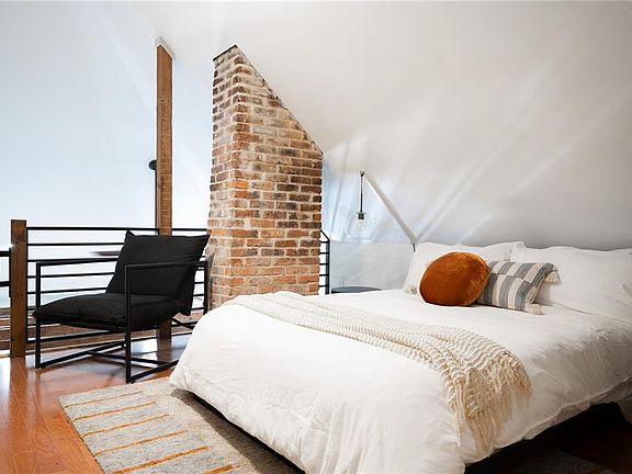 Soaring ceilingsWfh deskQueen sleeping areaHistoric brick detailsPrivate bedroom