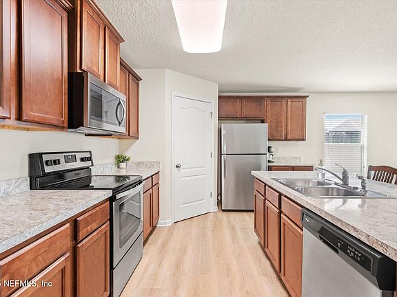 Discover this inviting 4-bedroom, 2-bathroom home in the sought-after Crescent Key community of St. Augustine. Built in 2017 and offering 1,860 sq ft of comfortable living space, this thoughtfully designed residence features a desirable split-bedroom floor plan and scenic pond views. At the back of the home, the spacious open-concept living area is perfectly positioned to capture peaceful views of the pond. The kitchen, dining, and living room flow together seamlessly ideal for entertaining or quiet evenings at home. The modern kitchen offers ample cabinetry, stainless steel appliances, and a central island - perfect for extra guests. The private master suite is also located at the rear of the home, offering pond views, a large walk-in closet, and an en-suite bath with dual vanities and a walk-in shower. Three additional bedrooms are located toward the front of the home, providing flexibility for family, guests, or a home office. Enjoy your mornings or unwind in the evenings on the back patio, where the tranquil water views create a perfect backdrop for outdoor living. Residents of Crescent Key enjoy a community playground and an unbeatable location close to St. Augustine's beaches, historic downtown, shopping, dining, and top-rated schools. Move-in ready and beautifully positioned this is the lifestyle you've been looking for!