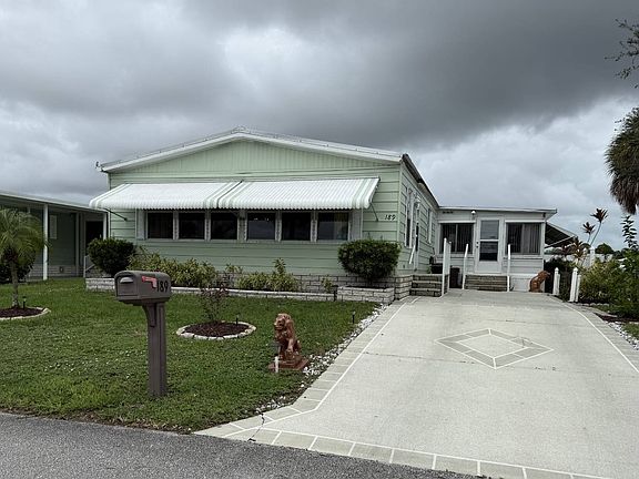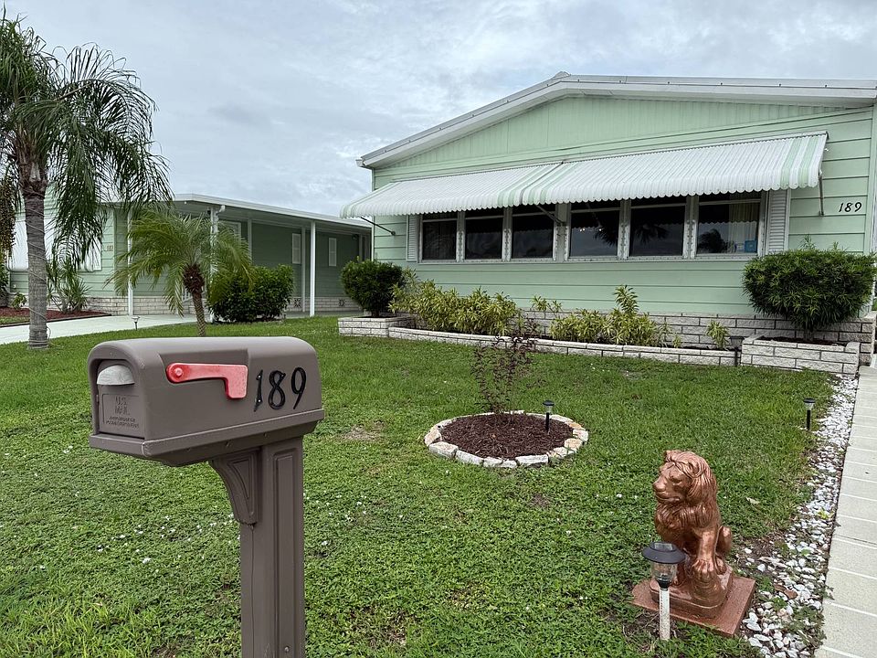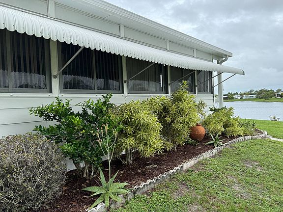 Come see this lovely 2-bedroom, 2-bath home with beautiful lake views from two sides! It's perfectly located near the front of the park, making it easy to get in and out while still enjoying the peaceful surroundings. You'll love the open kitchen and built-in shelves that offer plenty of extra storage. The home features both carpet and tile flooring, plus an inside laundry area for extra convenience. Enjoy your mornings with a cup of coffee or unwind in the evenings with a cocktail in the bright and relaxing Florida room overlooking the water. This home has been well cared for with lots of important updates: Metal roof (2018), A/C (2016), Vapor barrier replaced in 2016., New plumbing (2023) The seller will also replace the carport, and the estimate is already done - so that's one less thing for you to worry about! Come see why everyone loves living in Spanish Lakes - a friendly, active 55+ community with great views and great neighbors!