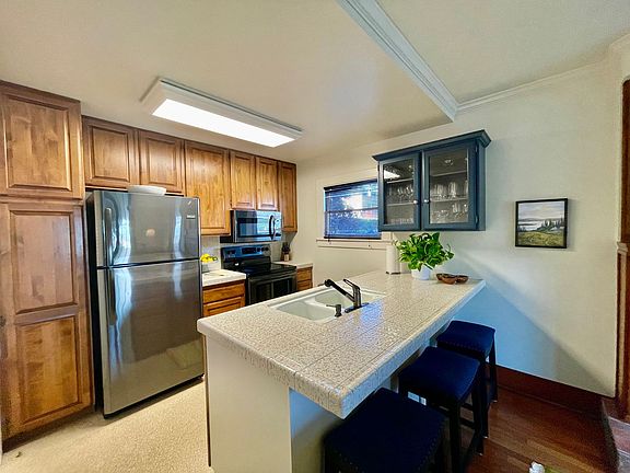*The unit is currently occupied Available July 01, 2025 -August 31, 2025! This monthly Fully-Furnished Vacation Rental with bright ocean views is located just one block from the Ocean View Blvd. "Walking Path" in Pacific Grove, CA. ALL UTILITIES INCLUDED Monthly Rental Rate: July 01, 2025 to July 31, 2025: $4,750.00 August 01, 2025 to August 31, 2025: $5,550.00 (illustrious Concours D'Elegance car show) **Ask about 2026 rates Security Deposit: $2,000.00 (may fluctuate based on length of stay) Located at 189 Central Avenue, Unit A's originally themed 30-day vacation rental has hardwood floors throughout the 1-bedroom, 1 bath sanctuary. The first floor encompasses the living/dining room, kitchen, bedroom, bathroom, walk-in closet, and coat closet. There is a 1-car enclosed garage on the lower level, with a staircase leading up to the interior coat-closet entry. As you enter the front door, you'll see 180 degrees of ocean views off of the living/dining room windows, as well as the kitchen. Whether you're lounging on the sectional couch catching up on your favorite t.v. series, or sitting at the breakfast bar countertop, the ocean views will not escape you. For additional ambiance, enjoy the gas fire place below the television. The fully supplied kitchen allows you to make the meals you desire, with updated appliances at your disposal. Attached to the kitchen is a washer and dryer, conveniently hidden behind two bifold doors, with storage space above. If you're to head down the hallway to the bedroom, you'll see on your right a linen closet, prior to entering the spacious bedroom. The brand new King-sized bed faces two large plate glass windows, with sliding glass doors in between leading out to your comfortable patio seating, and an access gate to the street. There is also a cozy corner with a comfy chair to read a book and gaze out the wooden-framed window to yet another ocean view. The bedroom features a walk-in closet, with ample shelving and hanger space. The bathroom includes a powder room, with another door leading to the toilet, and shower stall. If you're to leave the bedroom, the door immediately to your right leads to the coat closet, which can also be used for additional storage space. Inside of the coat closet is the door accessing the 1-car garage down a staircase. **If your vehicle does not fit into the garage, there is ample street parking on 1st street (directly next to the unit). All Utilities are included in the rent for this unit. (Electricity/Gas, Water, Sewer, Landscaping, Cable/Wifi). The television is a SMART TV - with all streaming capabilities. All amenities are nearby and within walking distance - whether that be downtown Pacific Grove, Monterey Bay Aquarium, Lovers Point or the infamous Cannery Row. Additional Fees Document Prep Fee: $150.00 (the fee for creating your lease) Application: $50.00 (any age 18 and older must apply)