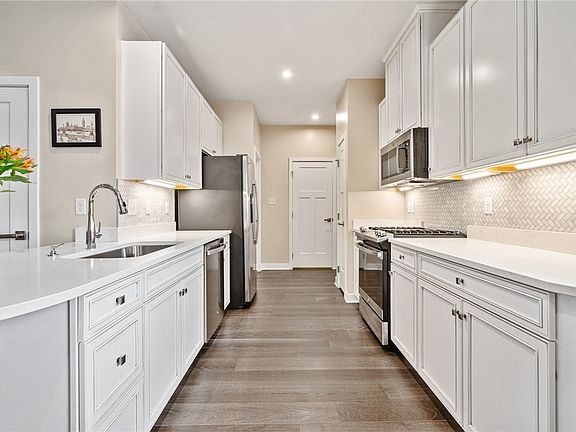A M A Z I N G new build (10 m old) w/TONS of upgrades, PRISTINE inside & out, FABULOUS open floor plan & GORGEOUS exterior patio/deck. FIRST FLOOR MASTER suite with tray ceiling split double bowl sinks,a large vanity area w/additional cabinetry,marble looking ceramic flooring,6 ft stand up shower w/seat & large walk in closet,STUNNING 42 in white shaker style cabinets w/glazing,quartz counters,breakfast bar seating for 3, herringbone backsplash, stainless appliances (5 burner slide in stove). Amazing dining/family room combo w/slider to covered trex deck,1st floor laundry,hardwoods throughout most of the main floor. 2 large bedrooms w/great closet space and full bath on the second floor. HUGE finished game room w/abundant storage,utility sink,rough ins for full bath,slider to the oversized and STUNNING french paver patio w/great views and privacy. TONS of natural light,attached garage(finished walls). Only walk out basement available in community. Very close to 79,North Hill,Cranberry